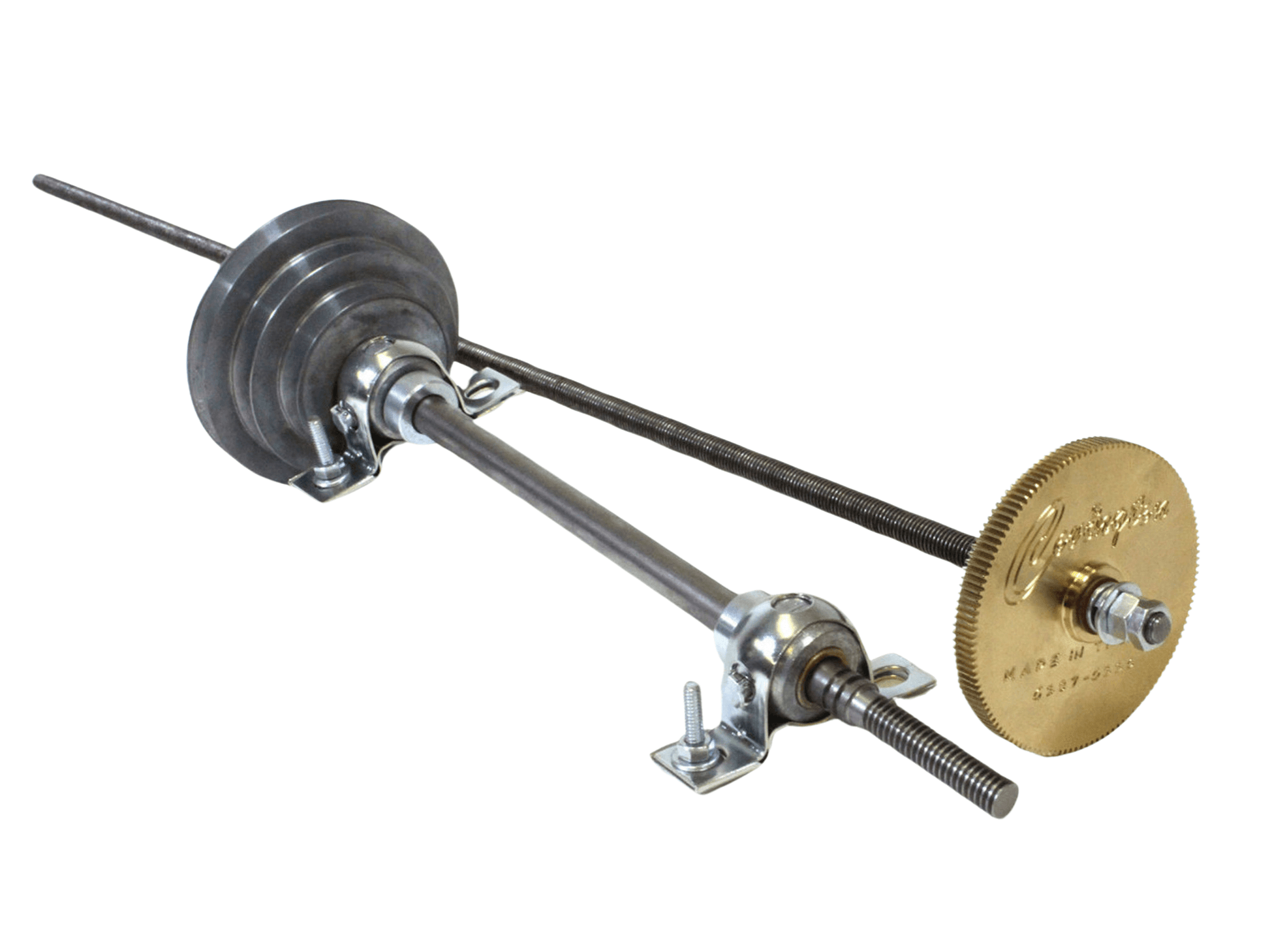 The power feed replacement kits designed for Covington's 10" trim saw and 12" - 16" slab saws include power feed motor, lead screw with over-running clutch, and cut-off switch. The power feed replacement kit for Covington's 18" - 24" slab saws includes a lead screw, aluminum bronze gear, over-running clutch, worm shaft assembly and 3-step pulley.