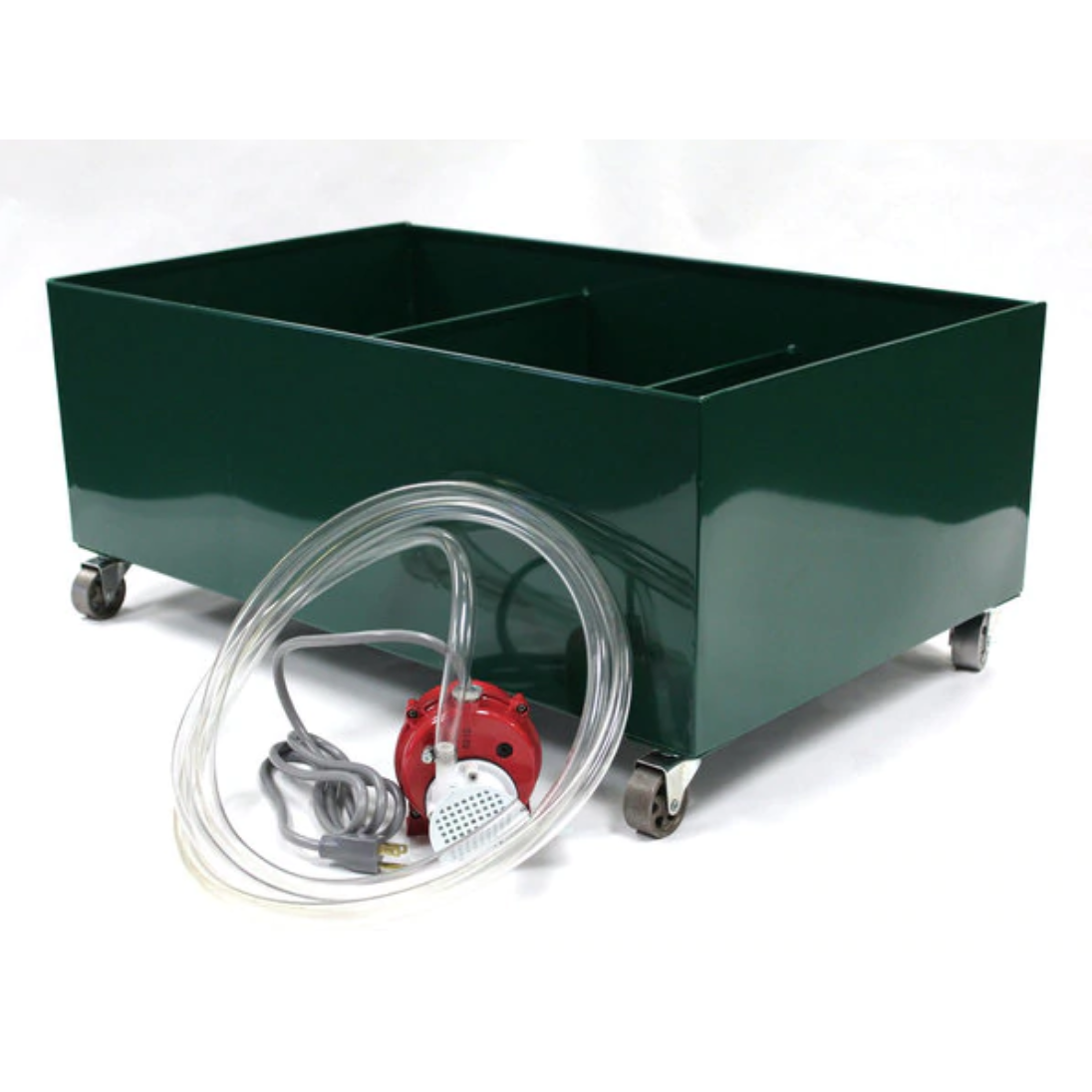 The system is also designed with wheels included, making it easy to move and position wherever you need it. Whether you're a professional in the lapidary industry or a hobbyist looking to enhance your workshop setup, the Covington Submersible Pump and Tank is the perfect cooling system for you.